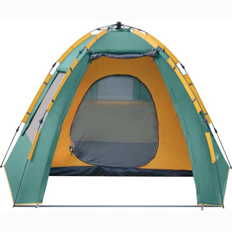 Высокая кемпинговая палатка с полуавтоматическим каркасом. Установка за 1 минуту. Двухслойная палатка с большим тамбуром. Возможна отдельная установка тента. Легко ставиться одним человеком. Минимум времени для установки и сборки. Q-образный вход продублирован сеткой. Улучшенная сквозная вентиляция. Проклеенные швы. Облегченная регулировка оттяжек со световозвращающей нитью. Москитная сетка. Дополнительные стальные стойки для полога.