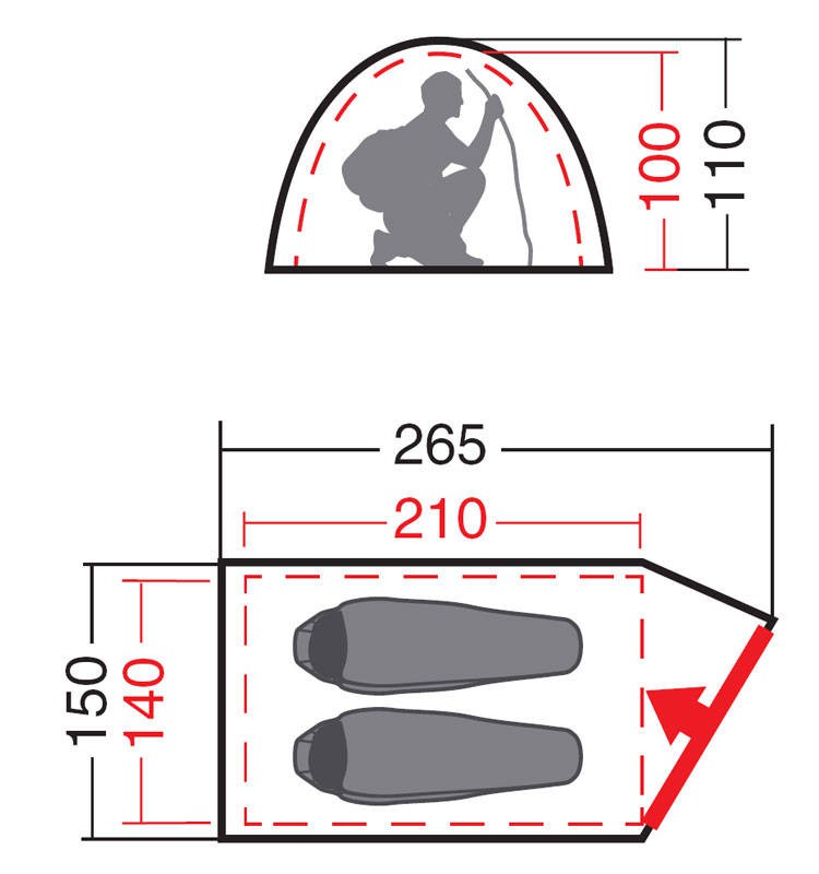 Двухслойная дуговая палатка. Обладает наибольшим жилым объемом при минимально возможном весе. Устанавливается легко и быстро даже на небольшой площадке. Отлично подойдет для путешествия вдвоем.