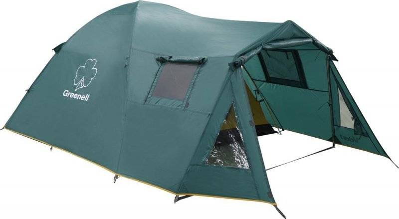 Каркасно-дуговая кемпинговая палатка с тамбуром большого полезного объема. Два входа. Два тамбура, один большого размера. Вентиляционные окна с сеткой и клапаном на молнии. Возможна установка без тента.