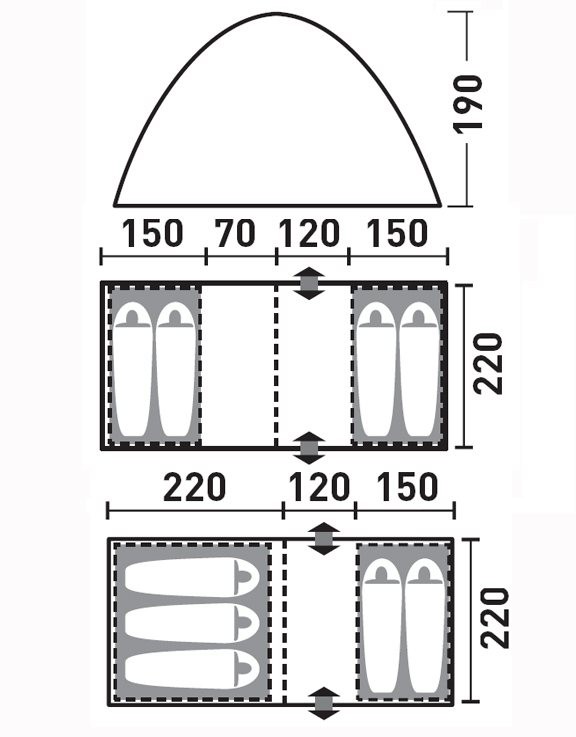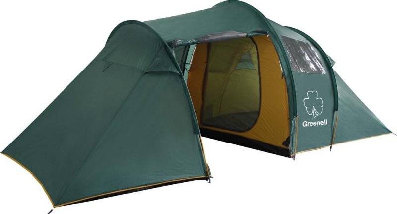 Конструкция полубочка, Прозрачные окна. Антикомариная система (юбка и сетка в тамбуре). Различные варианты конфигурации (2+2+3). Два входа, две комнаты, большой тамбур. Проточная вентиляция,. Возможна установка тента без внутренних палаток.