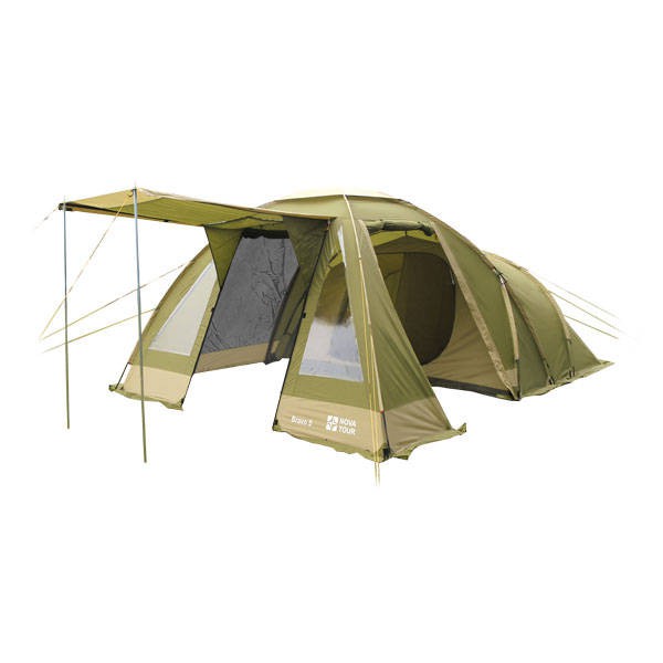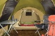 Палатка для кемпинга с большим тамбуром и одним спальным отделением. Конструкция позволяет установку тента отдельно и установку палатки во время дождя. Противомоскитные сетки на внутренней палатке и тамбуре. Объемный тамбур с тремя входами и ветрозащитной юбкой может использоватьсякак беседка с эффективной защитой от насекомых. Потолочная система вентиляции позволяет выводить конденсат.